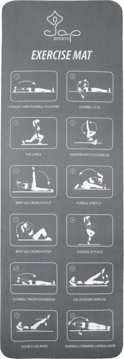 De mat is voorzien van 12 verschillende oefeningen. Hierdoor heb je het perfecte sportschema altijd bij de hand, afgedrukt op de fitnessmat.