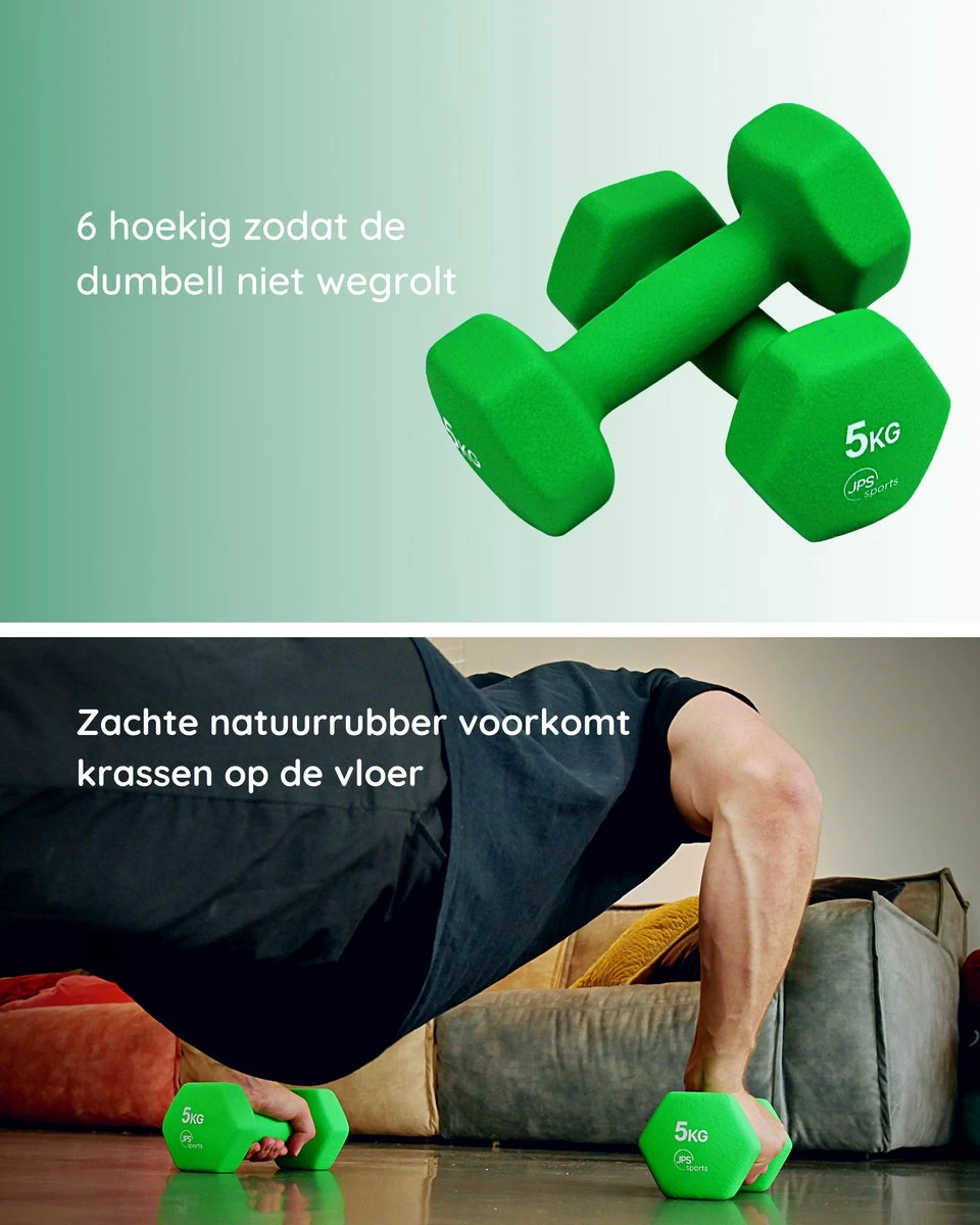 De JPS Sports Dumbells zijn gegarandeerd van de beste prijs/kwaliteit verhouding, geschikt voor langdurig gebruik. De dumbells zijn gemaakt van gietijzer en duurzaam rubber wat resulteert in de meest duurzame keuze voor dumbells. We hebben gekozen voor een zeshoekig ontwerp van de dumbells wat ervoor zorgt dat de dumbells niet zullen wegrollen wanneer deze op de grond worden gelegd.