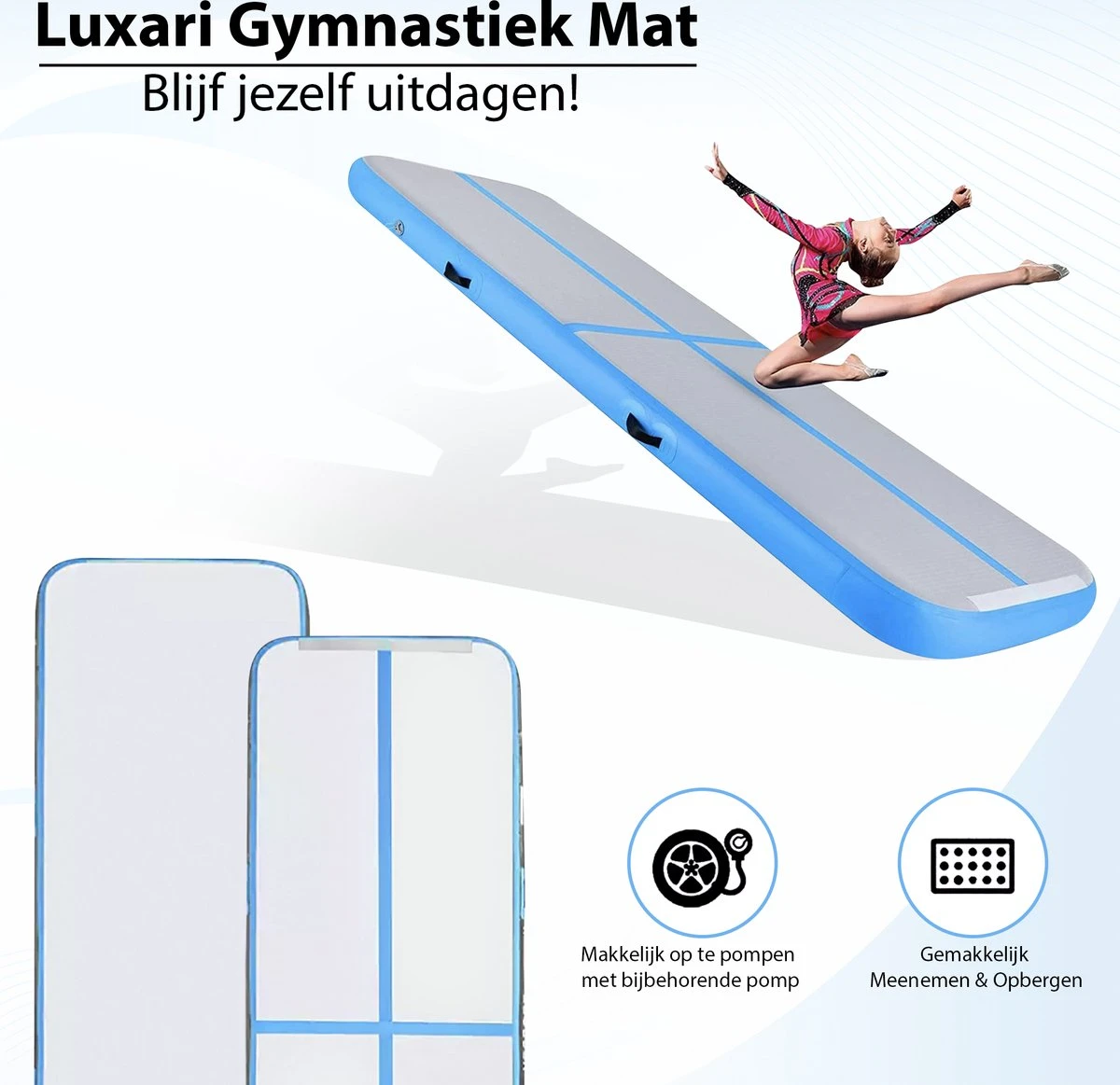Een AirTrack is de evolutie van de oude opblaasbare tumblingbanen die iedereen kent. De AirTrack is echter volledig plat, omdat de boven- en onderkant bij elkaar worden gehouden door duizenden dunne draadjes. Daarnaast is de AirTrack luchtdicht en dus volledig geruisloos. En geen zorgen, er is geen enorme vrachtwagen nodig om de AirTrack te leveren. Hij is door de ingebouwde ventielen eenvoudig op te blazen met een van onze elektrische pompen. De zijkanten van de AirTrack zijn gemaakt van een sterk bootdoek waardoor je er jaren lang op kunt blijven trainen.