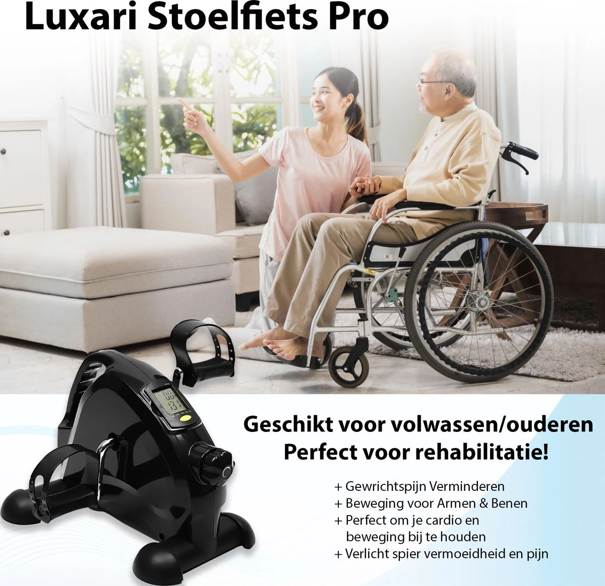 Luxari – Stoelfiets Pro – Verstelbare Weerstand – Inclusief Grip Mat – Handgreep – Display – Hometrainer – Deskbike – Beentrainer – Armtrainer – Fietstrainer – Bewegingstrainer
