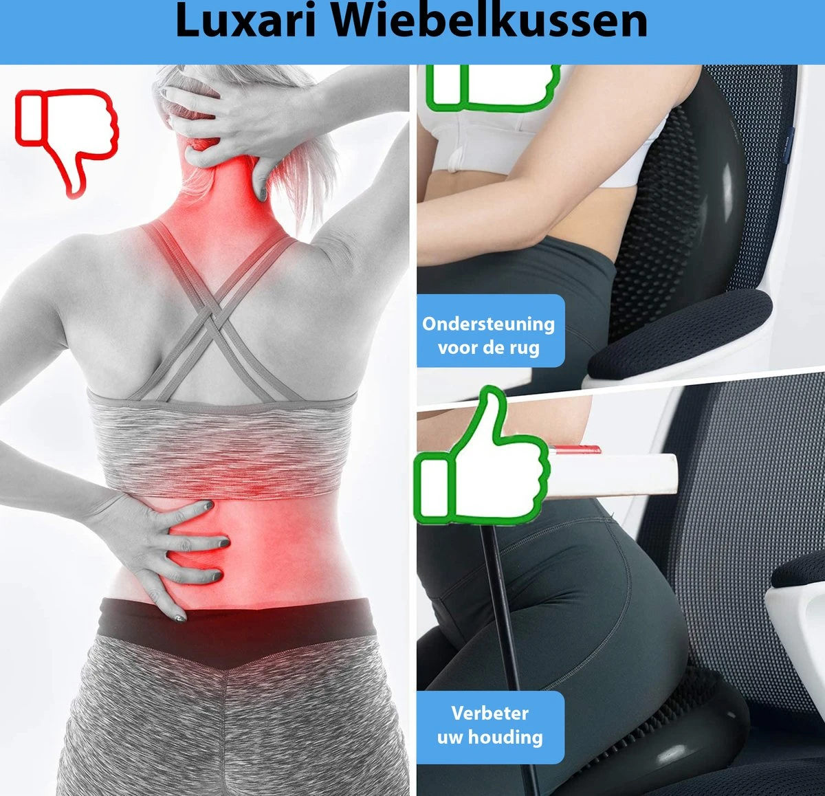 De Luxari Wiebelkussen wordt geleverd inclusief pomp. Hiermee kunt u de wiebelkussen oppompen of leeg laten lopen om de wiebelkussen af te stellen naar de behoeftes van de gebruiker. Hierdoor kan de wiebelkussen ook door verschillende personen gebruikt worden.