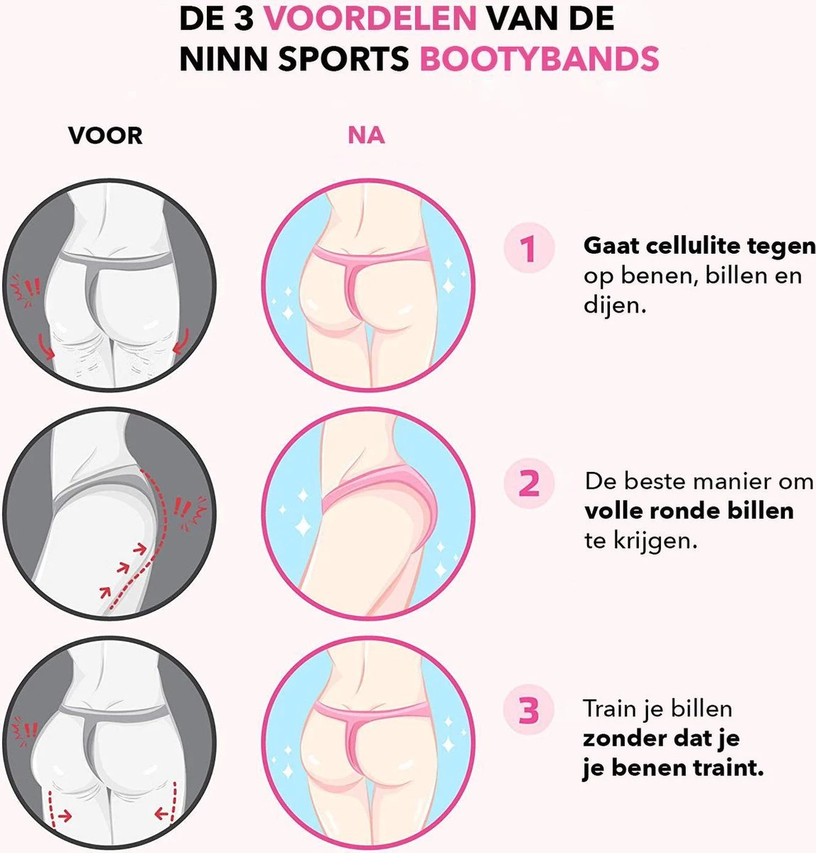 Droom jij ook van strakke bovenbenen en ronde billen? Wil jij dit bereiken met minimale inspanning? Met onze NINN Sports weerstandsbanden train jij waar en wanneer je wilt. Ze nemen weinig ruimte in beslag, zijn lichtgewicht, anti slip en maken jouw workout tot een feestje! elke keer weer! Dus; GET FIT TODAY!