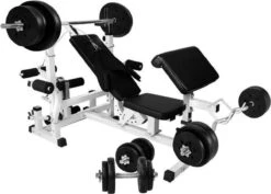 Gorilla Sports Universele Halterbank + 100 Kg Halterset – Kunststof – Halterstang Met Gewichten