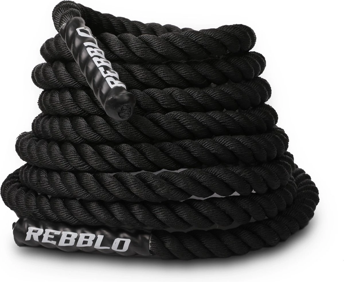 De battle rope is 9 meter lang met een diameter van 38 mm en weegt 7,5 kg. Verder heeft de battle rope soft grips zodat je geen last van je handen krijgt tijdens het gebruik.