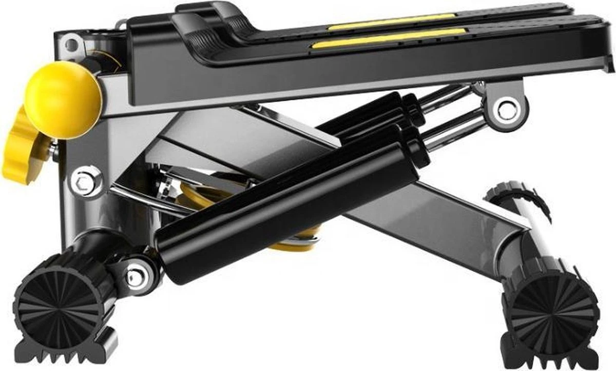 Wanneer je net begint met trainen, zul je beginnen met een lichte training die je geleidelijk opbouwt. Je zult echter zien dat je conditie met dit apparaat zeer snel verbetert en dan heb je een nieuwe uitdaging nodig! Daarom is het bij deze stepper mogelijk om de intensiteit van de training eenvoudig aan te passen. Stel de trainer in op een zwaarder niveau en blijf je fitheid en conditie verbeteren! De zwaarheid van de training kan makkelijk aangepast worden door de gele knop in het apparaat te draaien (zwaarder) of verder uit te laten steken (lichter). Let op: zorg dat de gele knop altijd bevestigt wordt, zodat de ingebouwde stappenteller het goed doet.