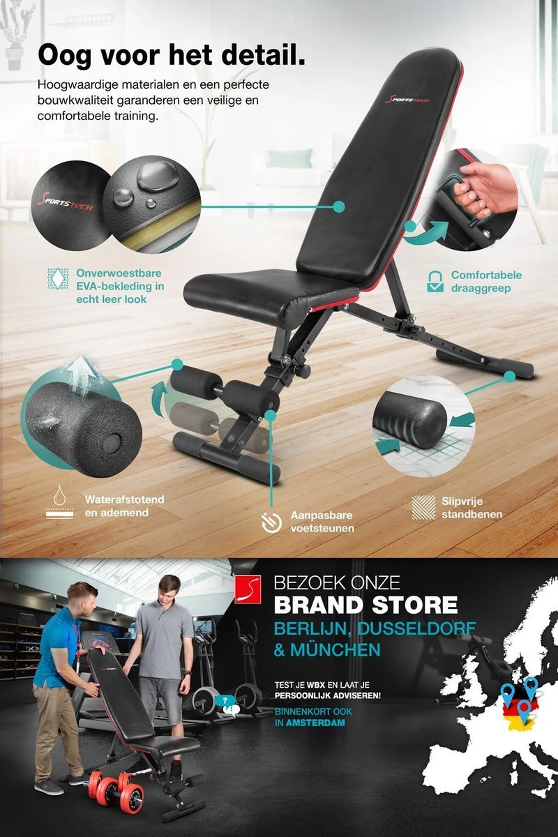 - ✅ : De ultra compacte trainingsbank met dubbele driehoekstructuur voor perfecte stabiliteit& duurzaam EVA-bekleding overtuigt – net als alle Sportstech krachtstations – door de hoogste kwaliteit en de lange levensduur. Concentreer je op je training en behaal de hoogste prestaties – nu en in de toekomst!