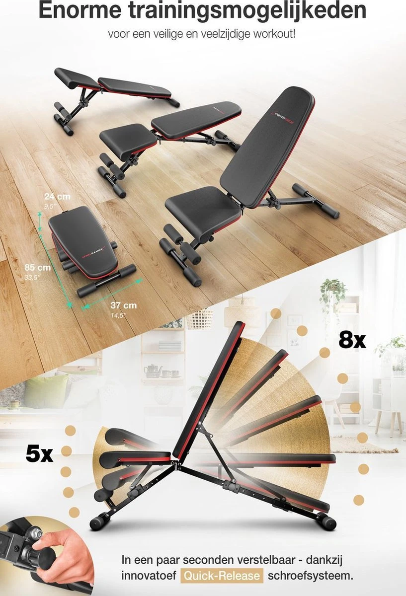 - ✅ : 40 verschillende combi’s maken van de fitnessbank een perfect krachtstation voor je rug-, buik-, borst-, schouder- en beentraining thuis. Lange of korte halters – maak je training met de verstelbare fitnessbank afwisselender dan ooit tevoren!