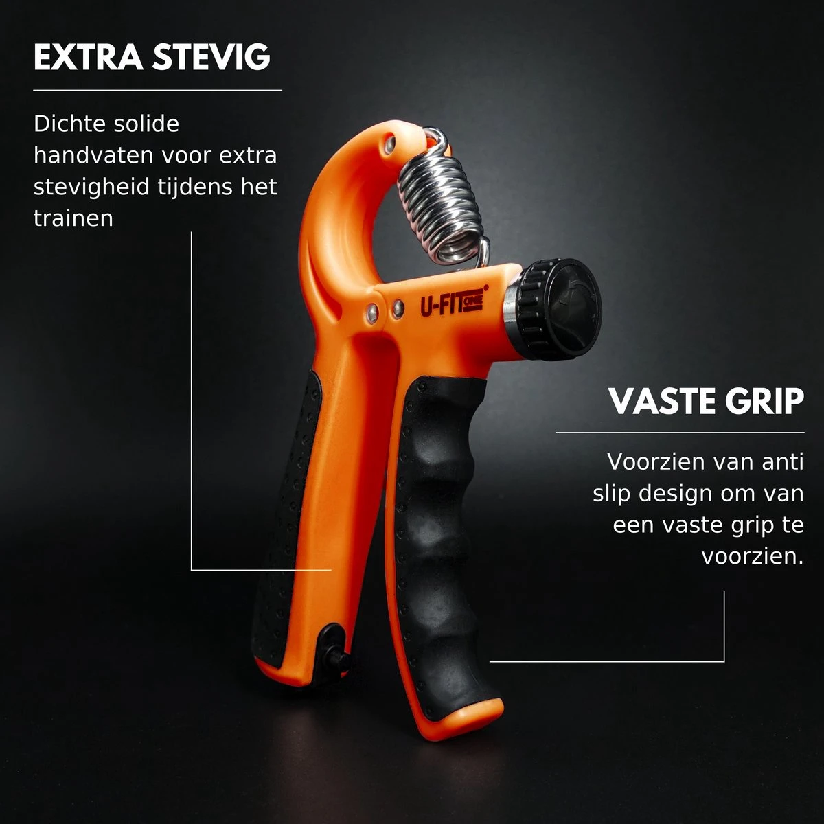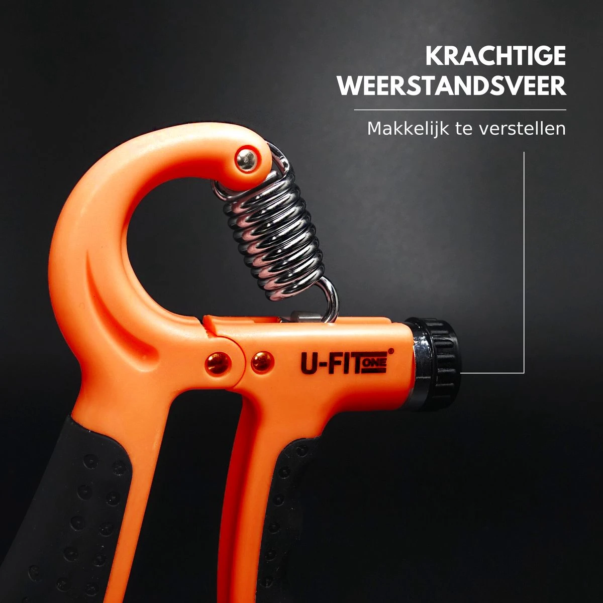 U-Fit One Teller Handtrainer 10 Tot 60kg – Verstelbare Handgrip – Handknijper – Vingertrainer – Onderarm Grip Trainer – Oranje – Incl Instructies