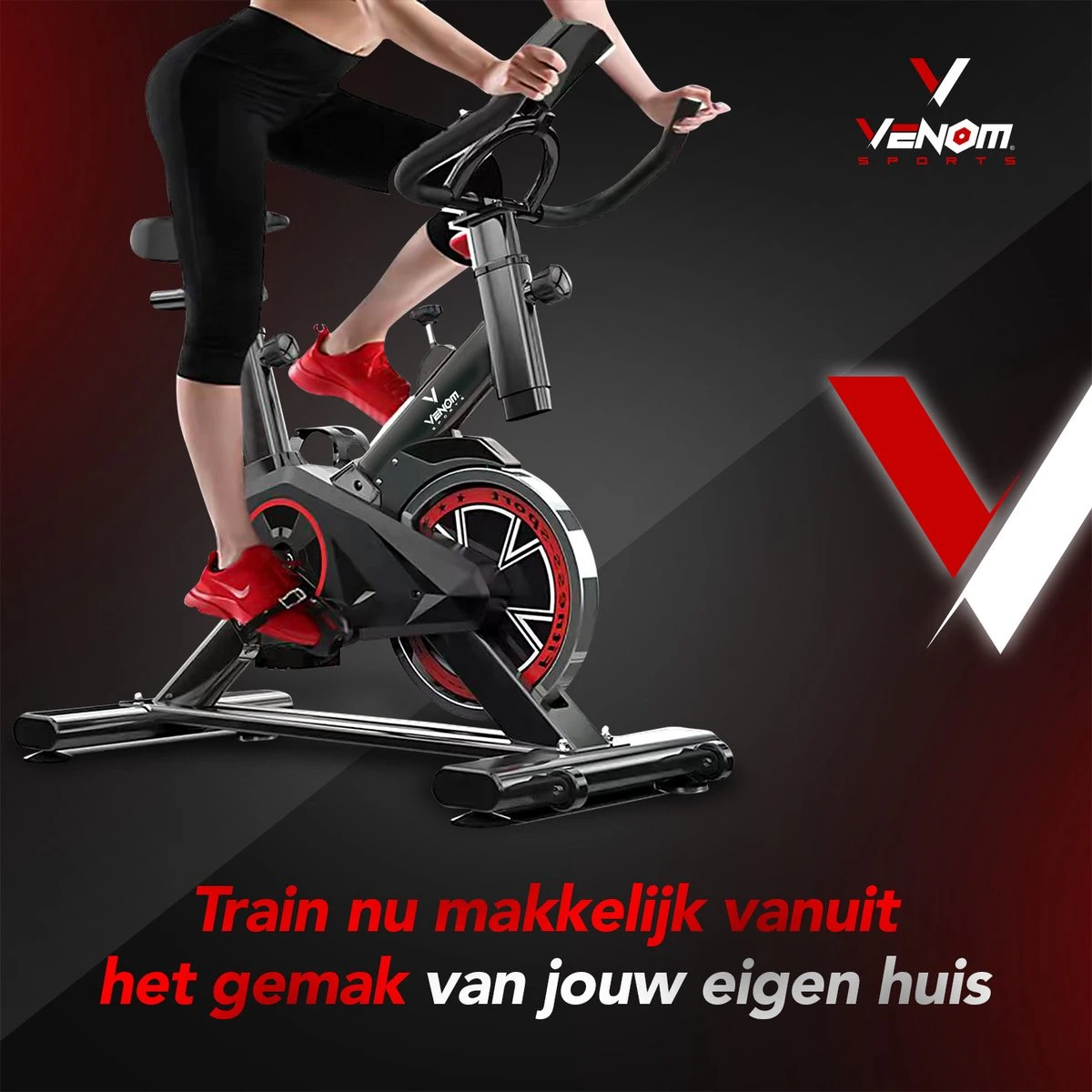 De hometrainers van het merk Venom Sports zijn speciaal ontworpen om extra stabiliteit en comfort te garanderen tijdens het trainen. Deze spinningfiets is geruisloos dankzij de V-belt aandrijving en heeft een draagvermogen tot 150 kg. De hometrainer fiets is niet alleen super gebruiksvriendelijk, stabiel en comfortabel, maar oogt ook mooi dankzij het luxe design. Deze hometrainer is voorzien van een LCD scherm waarop u uw snelheid, inspanningstijd, afstand, calorieën verbranding en hartslag kunt bijhouden tijdens het trainen. Hierdoor kunt u uw voortgang eenvoudig monitoren!